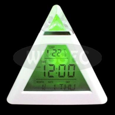 • Brand New 7 Colors Change LED Pyramid Alarm Clock With Thermometer and Date.