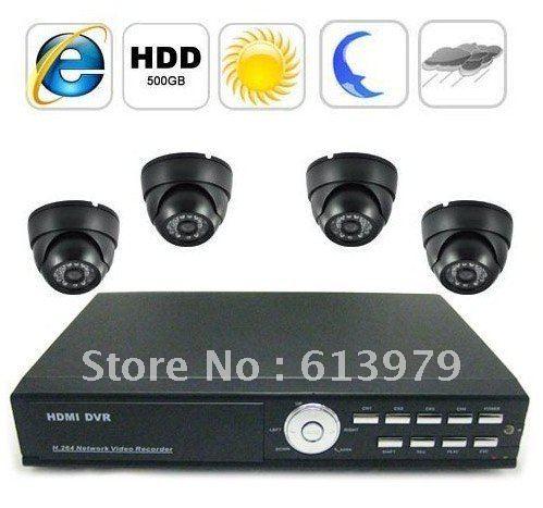 Complete Surveillance System with 4-Channel Embedded Linux DVR + 4 Cameras