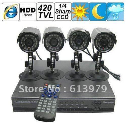 4 Channel H.264 DVR System with 4 Waterproof Nightvision 1\4 Sharp CCD Cameras