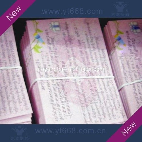 1,material: special paper. watermark paper, security paper, PET, etc.