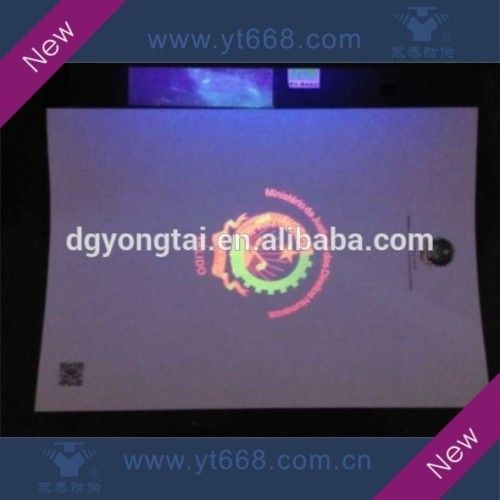 Characteristics: 1, We can identify the anti-counterfeiting performance of watermark, running numbers, barcode printing, hot stamping, latent-image effect by visual inspection. 2, We can identify the gravure printing by touch. 3, We can identify the fluorescence anti-counterfeiting, micro text anti-counterfeiting and voice anti-counterfeiting which are widely used by government and organization by test tools like UV lamp, magnifying glass, anti-counterfeiting pen etc. 4, Various designs, shapes, color, sizes are all available to customize. 5, Environmentally friendly in material and printing ink. We can provide SGS report as a support. 6, Our products are high-tech and high quality products.