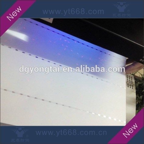 5. Laser tamper evident tape: tamper evident tapes are widely used in package. If someone peels off the tape, the specified words, codes or images under the label can be revealed on the surface of thepackaged goods so as to anti-counterfeit and indicate that the package is opened.