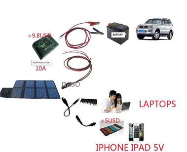 1. Set includes 80W solar folding bag folding solar panels ( monocrystalline silicon panels) +10 +10 laptop charging turn frusto -1 phone + mini USB charging cable regulator ( 5.5V to mobile phones or digital products rechargeable backup ) + solar inverter (for car batteries ) .