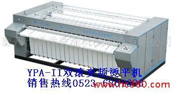 Ironing machine : Press the iron into the fabric width : 1800, 2500, 2800, 3000 sub-single- roll and double roll two, aircraft from the stainless steel drum, a chassis frame, variable frequency motor speed, conveyor belt, transport cylinder, transmission parts, electrical parts and other components. the stainless steel drum surface heated by steam or electric heating pipe, from the conveyor belt to linen, bed sheets, quilt and other transportation into the stainless steel drum surface after heating, the temperature reached smoothing effect.