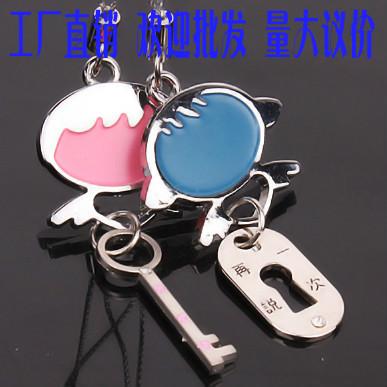 Yiwu commodity lovers mobile phone chain mobile phone pendant blue powder lock keychain key