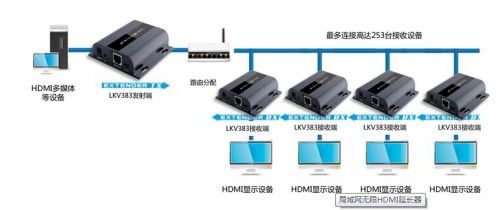 - LKV383 HDMI Extender All-new generation of high-definition digital video transmission protocol, with the product distribution network (routing, switches, etc.)