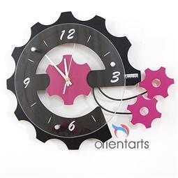 The Style Decorative Wall Clock is made by quality MDF board and one acrylic board, made as gear style, with Silence Device Movement. Need one 5th battery. Easy to adjust the time and display it.