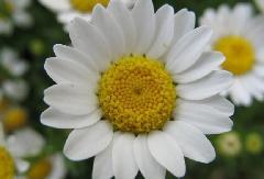 Description: This product is for feverfew Compositae Chryanthemum Parthenium extract. Biennial flowers, plant height 15-2-5 cm, leaves alternate, one or two cracked pinnate. Flowers Terminal, discoid, edge Ray florets white central cylindrical golden yellow flowers, color clear, bright, flower diameter of 3 to 4 cm. Plants can grow up to 15 cm high flowering, flowering from late winter to early summer, March-May is its flowering. Flowers, later of achene, mature in late May