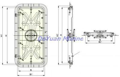 We are leading supplier of marine outfitting equipment, such as marine steel doors, marine aluminum door, marine windows, marine hatch cover, marine pilot rope ladder, embarkation rope ladder, gangway ladder , bulwark ladder, Watertight Steel Doors, Watertight Aluminum Doors, etc. This marine steel side swing watertight pressure door applies to the gateways of watertight Bulkhead below waterline, gateways on the semi-submerged ship that need watertight doors. This Watertight Steel Doors is of advanced type and able to bear internal pressure of 0.2Mpa and external pressure of 0.3Mpa without leakage.
