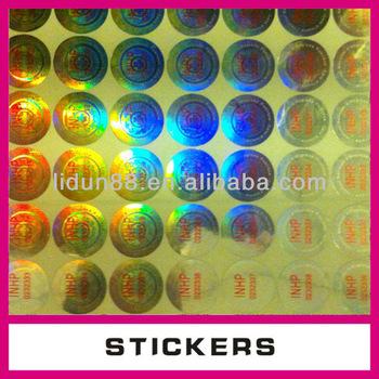 Customized hologram Sticker Standard security holograms are often relied on to protect a brand from tampering and product diverting, when there are other solutions that offer a higher level of security. In some cases, standard mass-produced tamper-evident labels, tags and seals provide cost-effective security for low-level tamping attempts; however, these are not much of a challenge to the well funded or determined counterfeiter. True brand protection requires labels with higher degrees of security. Since 2006, lidun hologram has worked with leading security label manufacturers who utilize some of the most advanced processes and technologies. Because of these partnerships, we have access to the best options and technologies for custom labels to protect your product, materials and distribution channels. We create custom security labels using holographic foils, papers and plastic films incorporating multiple taggant technologies, as well as clear UV barcodes and a variety of possibilities to deliver a solution that will meet your needs. watermark stickers: 1 generally mainly used by tax administration 2 there are 3 kinds of watermark, white watermark, black watermark, stripe watermark 3 hidden patterns and words , only can be see in some angle, good security effect 1, Non-toxic self adhesive embossed sticker 2, Before using sticker, please make sure surface is clean and dry, or will effect its adhesion. 3, Sticker can stick on anywhere, like woods, mirrors, windows, wall, plastics, etc. 4, nice gifts for children. 5, No mark left once it was removed carefully.