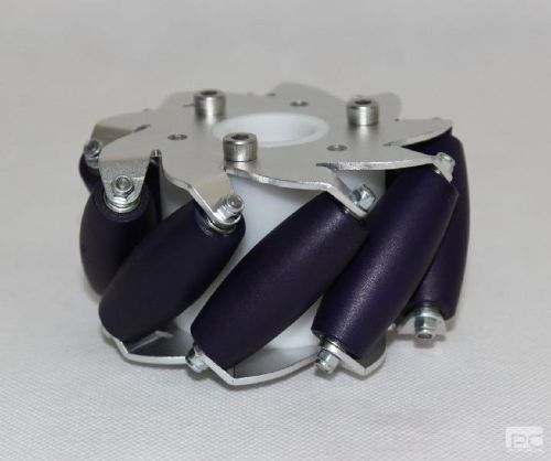 These mecanum wheels utilize 9 rollers positioned between 2 aluminum plates, its aluminum plates are anodizing to white color. In addition, each roller is mounted 2 bearings on the sides to make the wheels move smoothly.