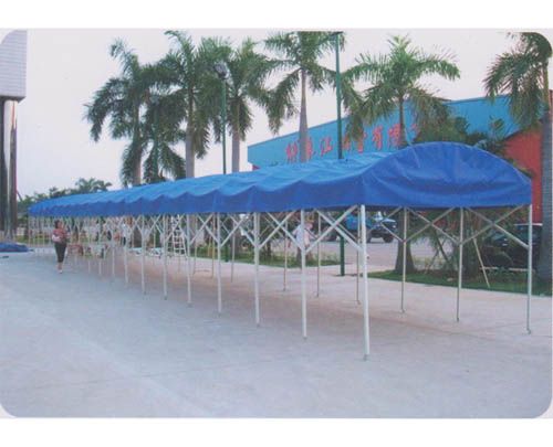 Wheel sliding tent wide range of applications, commonly used in food stalls, car wash, shops, factories temporary warehouses, temporary processing sites, large-scale activities, open-air restaurant, bar, open-air corridor ,, channel, docks, squares ,, garages, logistics heap field, residential parking spaces and other places.