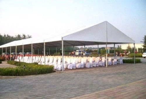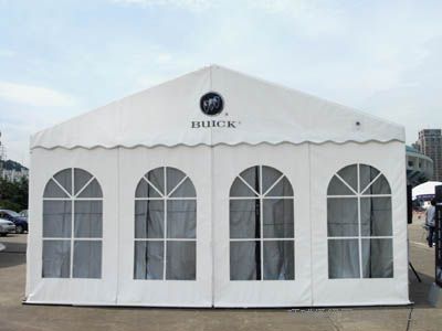 Party tent body frame made of high-strength lightweight hollow aluminum alloy, after oxidation tough solid, no rust, beautiful; tarpaulin with double-sided knife cut PVC coated fabrics, mildew, waterproof, fire retardant, UV, wear, wrinkle; connecting parts are galvanized steel, rust-proof, strong, beautiful canopy room without any pillars, space 100% utilization, the entire tent system maximum wind capacity of up 80km / h ~ 100km / h, learn. carrying up 0.3kn / m2 ~ 0.5kn / m2, and disassembly fast, convenient storage, removable, reusable and other characteristics.