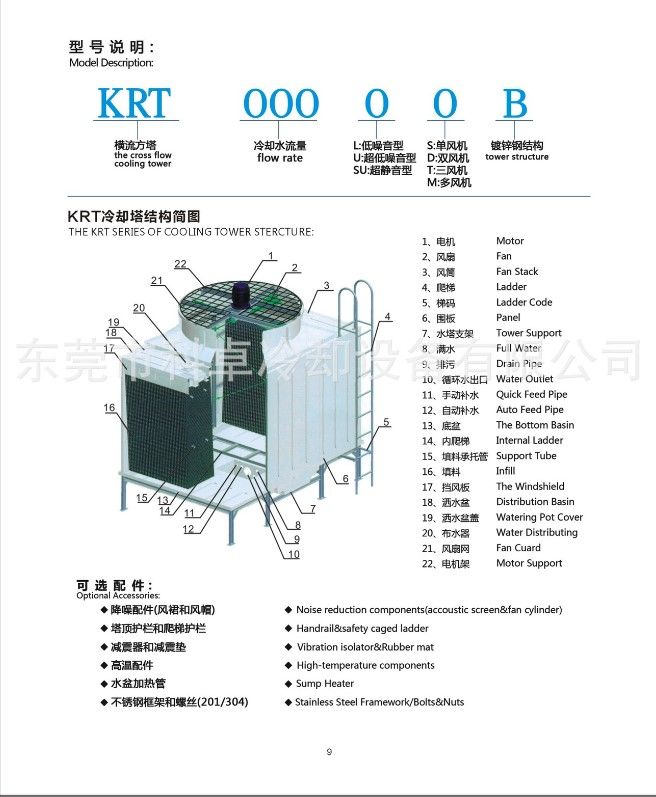 Kezhuo Cooling Equipment Co. factory in Dongguan, Guangdong, Anhui Huaibei plant cooling tower products mainly include: