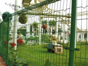add to cart Double Circle Fence I used 235 is a low-carbon steel cold drawn low carbon steel wire welded into the fence products, it uses to connect accessories and steel pillars fixed, high strength, steel is good, handsome in appearance, broad vision, ease of installation, feeling bright, Easy. The products are mainly used in highways, railways, airports, docks protective isolation using metal double ring fence the first pass is made of galvanized embalmed, strong corrosion resistance, the second time is spray, dip, various color spray, dip let you refreshing. After several years of wind, frost, rain, snow, sun exposure, or bright as new, anti-ultraviolet ability. green lawn in the white metal mesh background, look fresh and clean.
