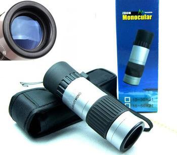 Super Mini 15-55x21 Zoom Adjustable Monocular Telescope with a Tripod for Camping & Hunting Product Details: | Model | 15-55x21 | | Product Condition | Brand New | | Power | 15-55 | | Objective Lens Aperture (mm) | 21 | | Objective Caliber | 21mm | | View field | 2-0.9° | | Line field | 20m/ 1000m | | Lens Material | BAK7 | | Size | 108x33mm | | Weight | 160g | | Packing list | 1 Telescope, 1 Neck-strap, 1 Bag, 1 Tripod |