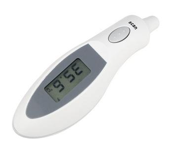 Easy Operation: 1. Press the ON/ recall button to turn on the thermometer. 2. Press the scan button, release it. when you hear a beep sound, the measurement is complete. 3. Press the On/ recall button continously for the last ten memories (NO. 9-NO. 0) will take turns to display on the LCD. 4. After one minute if nonuse, it will shut off automatically. Description: 1. Automatic shut off in one minute non operated. 2. Long life performace with common CR2032 size button battery. 3. Soft operation Keys not to disturb sleeping baby. Features: 1. Display range: 34.0 C-44 C 2. Accuracy: +-0.2 C 3. Min Scale : 0.1C 4. Memory: 10 memories 5. Taking times: One Second 6. Auto shut-off in 1min after nonuse 7. Battery : Lithium Battery (CR2032) 8. Battry life: Approx 4000takes 9. Size: 110x35x25mm 10. N.W.: 37g 11. safe and hygeian Attention: This product can display Celsius temperature ( C) only Package included :