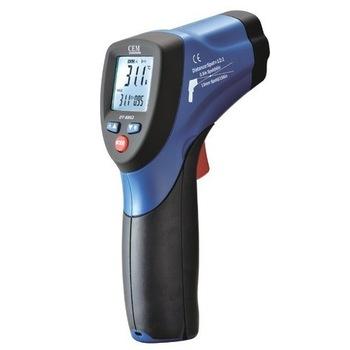 | CEM DT-8861 Professional Infrared Thermometer with Dual Laser Targeting DT-8861 Professional High Temperature Infrared Thermometers DT-8861 compact Infrared Thermometers provide much faster and accurate readings for most surface temperature measurements. Two laser points converge to a single spot when the unit is at the optimal distance from the object being measured (8861) . Features: 1. User selectable C or F 2. Dual laser targeting 3. Automatic data hold 4. Auto power off 5. White backlit LCD Display 6. Overrange indication 7. Trigger lock for continuous use 8. Max display 9. High and low alarm 10. Adjustable emissivity 11. Optical Resolution 12: 1 Specifications: 8861 IR Temp. Range -50C to 550C, -58F to 1022F IR Temp. Resolution 0.1°up 1000°, 1°over 1000° Emissivity Fixed at 0.95 Adjustable 0.10~1.0 Basic Accuracy ±1.0% of reading Response time Less than 150ms Spectral Response 8~14μm Size ( H*W*D) 146mm*104mm*43mm Weight 163g |