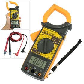 You can use the Multimeter in more places, such as factory, school lab, home hobby, machine repairing, etc. Specification: | Product Name | Clamp Meter | | DC Voltage | 1000V | | AC Voltage | 750V | | AC Current | 200A, 1000A | | Resistance (ohm) | 200, 20 K. | | Power Supply | 1 x 9V 6 F22 Batteries (Not Included Here) | | Main Color | Orange, Black | | Mateiral | Plastic, Electronic Parts | | Cable Total Length | 110cm/ 43' | | Size | 23.5 x 9 x 3.5cm/ 9.3' x 3.5' x 1.4' (L*W*T) | | Net Weight | 431g | | Package Content | 1 x Clamp Meter | Description: - This Multitester can be used for AC/ DC voltage test, AC current test, electric current resistance, diode test, etc.