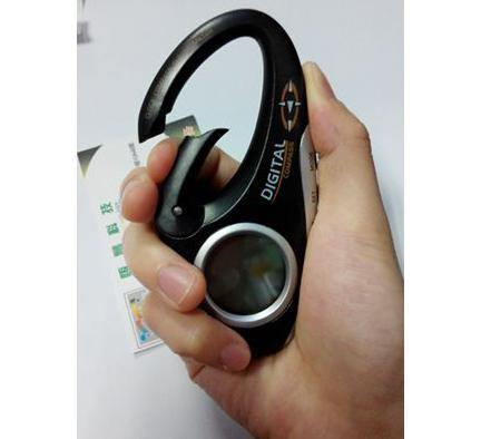 | The Travel Mate Digital Compass is uniquely designed with a carabiner clip that attaches to a backpack, purse, or belt loop. Featuring a digital compass, 24 Hour Style Watch and Fahrenheit and Celsius Thermometer. Additionally, the Travel Compass has a LCD lens. Feature: 1. Based on technology of electronic bearing sensor with the functions of bearing direction, digital clock, digital thermometer and backlight 2. Auto calibration when turned on 3. Display direction with degree 4. Display temperature in Celsius and Fahrenheit 5. Display time in 24 hours mode 6. Light weight. mini size, with a clip. Easy to carry 7. Note: Carabiner is only strong enough to hold compass, not for hanging other objects 8. Precaution: do not put it near Magnetic Field Equipment Descritpion: Color: Black and slivery, as show as picture Backlight color: Blue Built-in security clip Function: Compass, Thermometer, Clock Power supply: 1 * CR2032 battery ( dont included) Item Includes: 1 * Digital Compass (without battery) |