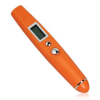 | Take accurate temperature readings with this laser-sighted infrared pen-style thermometer. Reads in Celsius or Fahrenheit, there is a switch on the panel to choose between them. There's also a switch to turn on or off the laser sight. The temperature pen measure below-zero and super-hot temperatures. Whether you want to measure something very cold or very hot, this thermometer has it handled. Able to measure temperatures from -58 to 482°F (-50 to 250°C) , you can check nearly any temperature you'd find in your household quickly. Designed for ease of use, the thermometer features auto shutoff and a low battery indicator to let you know when it's time to replace the LR44 batteries (included) . Features: Temperature Range: -50°C ~ 250°C (-58 °F ~ 482°F) Accuracy: ±2% or 2°C Distance Spot Ratio: 1: 1 Emissivity: 0.95 Response Time: ≤0.8s Repeatability: ±1% or±1°C Resolution: 0.1 °Cor 0.1°F °C/ °F Selection - OK Data Hold Function - OK Auto Power Shut Off - OK Low Battery Indication - OK Orange Color with Clip Include: 1 x Temperature Pen Mini Pocket Non-contact Infrared IR Thermometer (battery included) 1 x Temperature Pen User's manual |