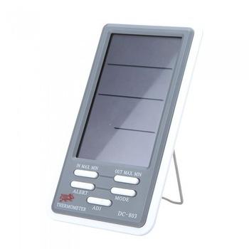 | Simultaneously display time, indoor/ outdoor temperature and indoor humidity. Large LCD display for clear and easy reading data. Changeable temperature unit: C and F Memorize day's MAX/ MIN value of indoor/ outdoor temperature and display recording time. Outdoor MAX/ MIN temperature alarm function. Everyday alarm clock function. Date & time display. 2 modes of time display: 12h / 24h Comfort degree display. With wired temperature probe for measuring outdoor temperature. With stand at the back side, you can place it on the desk or hanging on the wall. Specifications: Housing material: ABS Screen size: Approx. 9 * 5.3cm / 3.5 * 2.1in (L * W) Temperature Range: `Indoor temperature: -10-+50 (+14 F-+122 F) `outdoor temperature: -50 C-+90 C (-58 F -194 F) Humidity Range: indoor 10% RH-99% RH Temperature accuracy: ±1 C Humidity accuracy: ±5% RH Power supply: 1 * AAA battery (Not included) Item size: Approx. 14.5 * 8 * 2.4cm / 5.7 * 3.1 * 0.9in Item weight: Approx. 104g / 3.7oz Package size: Approx. 19.6 * 11.4 * 2.2cm / 7.7 * 4.5 * 0.9in Package weight: Approx. 146g / 5.1oz Package included: 1 * Digital Thermometer & Hygrometer 1 * Wired temperature probe 1 * User's manual |