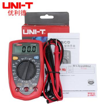 Features of UT33B digital multi meter: A. UT33B digital multi meter is small in size with just a palm size so that users can bring it any where when it is neccesary. B. UT33B digital multi meter is designed in fashional apperance. The brilliant pink color makes you always in! C. With multi function, UT33B digital multi meter can meet your demands of testing voltage, current, resistance etc with only one tool. D. Besides the general functions, UT33B digital multi meter can also used to test the battery. Specifications of UT33B Digital Multi Meter: | Basic Functions | Range | Best Accuracy | | DC Voltage | 200mV/ 2000mV/ 20V/ 200V/ 500V | (0.5%+2) | | AC Voltage | 200V/ 500V | (1.2%+10) | | DC Current | 200mA/ 200mA/ 10A | (1%+2) | | Resistance | 200W/2000W/20kW/200kW/20MW | (0.8%+2) | | Special Functions | | | | Battery Test | 1.5V/ 9V/ 12V | (2.5%+2) | | Diode | | | | Data Hold | | | | Display Backlight | | | | Low Battery Display | | | Input Impedance for DC Voltage Measurement | Around 10MW | | | Max. Display | 1999 | General Characters of UT33B Digital Multi Meter: | Power | 9V Battery (6F22) | | LCD Size | 48 x 16mm | | Product Colour | Red and Grey | | Product Net Weight | Around 156g | | Product Size | 130 x 73.5 x 35mm | | Standard Accessories | Test Lead, Battery, Holster | | Optional Accessories* | Clip-On Test Lead Light (UT-TL) , Built-In Test Lead Light (UT-L1) , Built-In Test Lead Light Plus (UT-L2) | | Standard Individual Packing | Gift Box | | Standard Quantity Per Carton | 60 pcs | | Standard Carton Measurement | Around 486 x 345 x 310 mm (Around 0.052 CBM Per Standard Carton) | | Standard Carton Gross Weight | Around 18kg | |