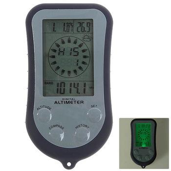 Ultra thin and lightweight Digital altimeter, barometer, thermometer, compass, weather forecast and time in one design All functions are displayed on an LCD screen with super bright green LED backlight Easy to use and very convenient to carry along on your strap or key chains Ideal companion for outdoor enthusiasts seeking for extreme fun Altimeter: Range: -2296 fts to 29500 fts Resolution: 1 meter or 3 fts Barometer: Range: 350-1100m hpa Resolution: 1 hpa Compass: Display mode: 360 degree with 16 cardinal point segments Accuracy: ± 3 degree Resolution: 1 degree Thermometer: Range: -5 deg. C to 50 deg. C (Celsius/ Fahrenheit selectable) Accuracy: ± 2 deg. C Resolution: 1 degree Weather Forecast: Sunny, slight sunny, cloudy, rainy Clock: Time format: 24H or 12H Calendar: Year, month, date, time General: Material: Plastic Display: 2.1 inch LCD Power supply: 1 x CR 2032 button cell (included) Color: Blue Product weight: 50 g Package weight: 70 g Product size (L x W x H) : 9.7 x 5.2 x 1.7 cm Package size (L x W x H) : 11.0 x 6.0 x 3.0 cm Package Contents: 1 x Multifunction Digital Altimeter 1 x String 1 x CR2032 Button Cell |