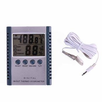 | HC-520 IN/ OUT Temperature & Humidity meter is characterized at : * multi-function * low power consumption * high stability & accuracy * memory of last measuring value Features: IN and OUT temperature measuring display temperature and humidity simutaneously MIN and MAX value recording confortable degree symbol °C/ °F unit selectable Desk-top placing or Wall Hanging Specification: Temperature range: IN side temperature: -10~+50°C (+14-+122°F) OUT side temperature: -50~+70°C (-58-+158°F) humidity range: 20%~99%RH resolution: temperature: 0.1°C (0.1°F) humidity: 1%RH accuracy: temperature: ±0.1°C (-20~60°C) ±2°C (other) humidity range: ±5%RH (20%~99%, at 25°C) power supply: 1.5 (AAA size) x 2 product dimension: 78 x 98 x 17mm Weight: 83g Weight (including packaging) : 110g storage condition: -20~60°C, 20%~80%RH Package Contents : 100% Brand New 1 x Digital Thermo-Humidity Meter 1 x Cable |