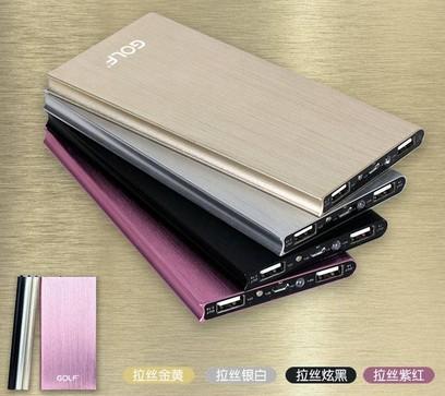 Brands Golf Model GF-101 Capacity 10000mAh Size 153*76*9.8mm Weight 245g Material Aluminum Input Voltage DC5.0V 1000mAh Output Voltage DC5.0V 1000mAh / DC5.0V 2100mAh (Dual USB) LED Flashlight Yes LED Display No Accessories 1*Power Bank, 1*Mircro USB cable, 1*User Manual, 1*Packaged Available Color Purple/ Silver/ Black/ Yellow Product Description Designed to provide power for your iPhone, iPad, iPod and mobile phones. Built-in 10000mAh high capacity rechargeable Li-Ion battery. 10000mAh capability, powerful with long operation time. USB output, more convenient. practical and long cycle life. Safe and reliable, perfect for using on travelling and outdoor activities. |