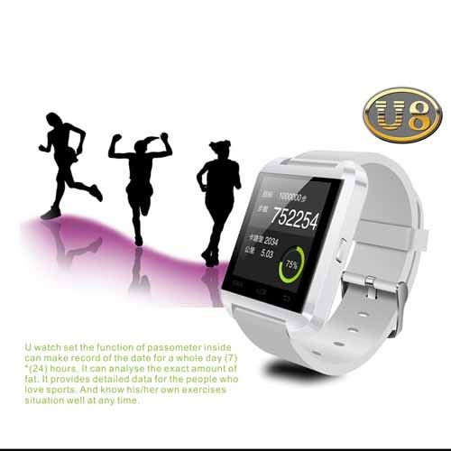 This is a new Bluetooth Smart U Watch U8 which is compatible with all Bluetooth V2.0 or above enabled smartphones, tablets and PCS (support Android 2.3 or above) , such as for iPhone 4, 4S, 5, 5S, Sumsung S3, S4, Note 2, Note 3, Note 4 etc. Specifications: Ambient Noise: ≤ 75dB Transmitting Range: ≥ 10m Talk Time: About 3 hours Charging Time: About 1 hour Music Play Time: About 6 hours Standby Time: About 160 hours Bluetooth Version: Bluetooth V3.0+EDR Range of Frequency: 2.4GHz spectrum Language Support: English, Chinese Bluetooth Protocol: A2DP + HFP 1.5 + HS P 1.2 Power Supply: Built-in 230mAh rechargeable battery Colors: Black, white, red Package included: 1 X Bluetooth Watch 1 X charger 1 X USB cable 1 X English User Manual Android System can support all function in the description; BUT ISO only support: Passometer, Calendar, Call Sync, Calculator, Clock, Stopwatch.