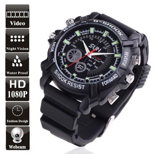 | Function: Watch, Video-taking, Photographing and Recording Main Features: - Fashionable design, exquisite workmanship. - Normal watch function, displays time in seconds, minutes and hours. - Real-time clock adjustment. - Waterproof, can be used as deep as 15m under the water. - With infrared light, supports night vision, can record even in complete darkness. - With hidden HD pinhole camera, can also be PC camera. - Applied Scope: Meeting recording, Monitoring recording, Obtain evidence, Webcam, Family, Office, Corporation, School, outdoors, etc. Memory Capacity: Built-in 8GB Vision Angle: 90 degree Built-in MIC: Yes Video: - Format: AVI - Code: M-JPEG - Resolution: 1920 x 1280 - Frame Rate: 30 fps Image: - Resolution: 4032 x 3024 - Format: JPG - White Balance: Auto Material: - Bracelet: Rubber - Dial: Stainless steel Software: Operation system or major audio and video playback software OS: Windows ME / 2000 / XP / 2003 / Vista , Mac os 10.4, Linux Voltage: DC-5V Data Transfer Interface: Mini 4 Pin USB Battery: Li-ion Battery Temperature: - Operation: - 10 ~ 60 Degrees Celsius - Storage: - 10 ~ 70 Degrees Celsius Operating Humidity: 20 % ~ 80 % RH Color: Black Approved: CE / FCC |