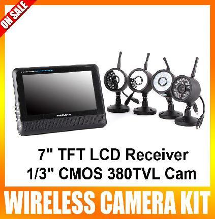 | 1. 4CH digital wireless camera & DVR system 2. Simple installation- no cables required ! 3. Total digital wireless , no interferences , no privacy leak 4. 7' LCD monitor with integrated video recorder 5. Support up to 32GB SD card and external 6. Support 4 cameras/ 24hours/ 7days non-stop overwrite recording 7. Multiple recording modes : manual , schedule , and motion activated 8. 15meter night vision range 9. Video quality ; 4CH VGA 10fps , 1CH VGA 30fps 10. Weather proof outdoor cameras with 300m/ 1000ft transmission open range 11. Video output function for bigger monitor 12. support 32G SD card Camera Spec: Image Sensor: 1/3' OmnVision CMOS Horizontal Definition: 380 TV line Receive frequency: 2.4GHZDigital RF modulation Minimum Illumination: 0Lux (Infrared LED ON) / 5LUX (IROFF) Night-vision distance: 15m Power Adapter: DC 5V/ 1000mA Dimension: ¢57mm*67mm Weight: 200g Receiver Spec : LCD Screen Size: 7' TFT resolution: 800*3 (RGB) * 480 TV system : PLA&NTSC Transmission frequency: 2.4GHZDigital RF modulation Receiving Sensitivity: ≤-85dBm Power Adapter : DC 5V/ 1000mA transmission distance without block: 300m (990ft) Dimension: 190mm*140mm*20mm Weight: 322g Packing List: 1 x 7 inch TFT LCD 2.4GHz 4Channels Wireless AV Color Monitor 4 x 2.4GHz Wireless CMOS Color Camera 1 x Adaptor for Monitor 4 x Adaptor for Camera 1 x RCA Connection Cable 1 x Antenna 1 x Standalone Remote Control |