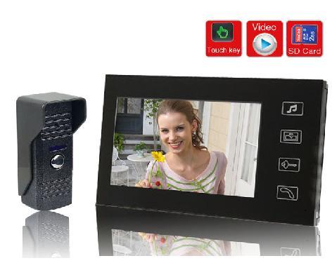 | New touch 7inch video door phone Super thin design shape Touch button Suitable for every homeWith rain cover 7-inch color LCD video door phone Model No: SY806ME11REC 1 INDOOR TO 1 OUTDOOR Product Function 1. Ultra-slim design indoor monitor, full-touch screen, nice and luxurious, available for wall-mounted . 2. Water and oxidation proof, durable alloy outdoor door station, supporting embedded and hanging installation. 3. High sensitive touch technology (with voice hint) . 4. No radiation, low consumption, high resolution, 7 inch digital color screen. 5. Monitor, intercom, unlock, hand-free, multi melody, . 6. Volume, brightness and contrast adjustable. 7. With adaptor and cable, easy to install. 8. Max: 1camera+6 monitors; 2 cameras+6 monitors. 9. Support SD card record, record time is 10s; max: 32G SD card, product equipped with 2G card. Item Includes: 1 x 7 inch TFT LCD Screen 2 x 420TV Line outdoor camera 1 x DC 15V Switch adapter 1 x Mounting plate 4 x 10CM Cable 1 x Screw bag 1 x Manual |