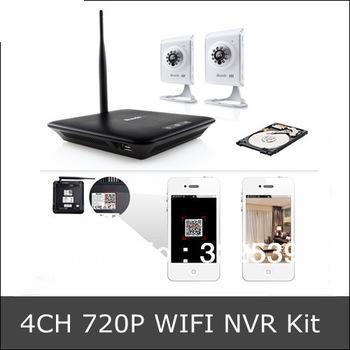 Wholesale Zmodo 4Chanel 720P NVR With 2 PCS of Night Security Wireless Camera Kit CCTV System DS-CM1A-K