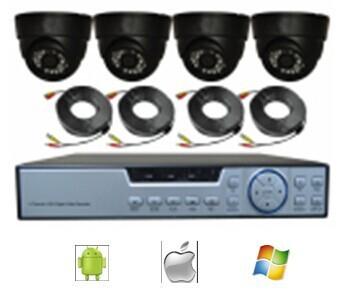 DIY 4CH H. 264 Home Security Video Surveillance System DVR Kit (4pcs 600TVL IR Cut Outdoor Camera, VGA HDMI) DVR Specification: 4CH Full D1 Real Time Recording 4CH D1 Playback, 4ch Video in 1ch Video out, 1 x HDD, 1ch Audio in 1ch Audio out, Support VGA, PTZ, With USB Mouse, DC12V/ 2A adapter; without Remote IP Camera Specification: IR LED: dia5*24 pcs IR LED Working Distance: 20m Lens: 3.6/6/8mm Image Sensor: SHARP/ SONY/ CMOS IR-CUT 600TVL Package lisit: (1) P2P 4CH H. 264 FULL D1 DVR (usb Remote mouse 3G network} 1pcs (2) 24LED DOME CAMERA 600TVL 1/3 4PCS+stand (3) 20meter video and power cable 4pcs (4) 12v5a big power can wokr 4 camera and 1 dvr |