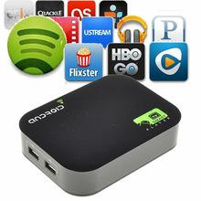 | smart tv box Selling points and latest function * DDR3 1GRAM , 4GB Flash memory. * Android 4.2 OS * Google Play store pre-installed. * DualCore CPU MAX 1.6Ghz. * Support 1080p playback. * 1080P hardware decode. * Webcam: Skype, QQ will help you to make a video call with your friends and family on your big size TV * Support Samba, Netflix, Youtube. * Hardware decoder on Flash player (Flash 11.1) What is a smart TV ? When the Internet connects to your TV . that's smart TV. Manufacturer Specifications: OS version: Android 4.2 CPU: Allwinner Boxchip A20; Cortex A7 Processor Speed (max) : 1.7GHz RAM: 1G DDR3 Flash memory (internal + external) : 4GB, up to 32GB external WIFI: 802.11 b/ g/ n Languages: Multi-Languages supported Supported media formats: Video files: 1080P video playback, AVI, MOV, TS, M2TS, RM/ RMVB, MKV, FLV, WMV, 3GP Audio files: MP3/ WMA/ WAV/ OGG/ FLAC/ APE/ AAC Photo files: Jpg (Baseline) .BMP.GIF (Static) .PNG Ebook files: PDF/ Epub/ TXT/ FB2/ PDB/ RTF (Android device can download various media players and codec's for supported format options) Main product dimensions: 120mm X 90mm X 30mm (L X W X D) Main product weight: 120 gram Packaging & Shipping Package Contents 1 X Android TV box 1 X Power adapter 1 X Remote control 1 X AV cable 1 X Manual |