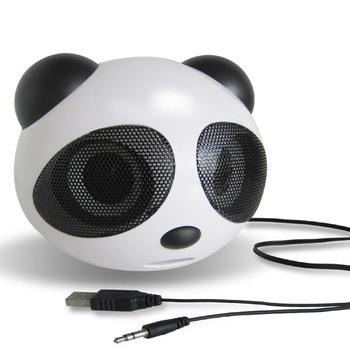 | 1) Panda shape designed, cute and funny 2) 3.5mm jack audio out, work with for iPod/ Notebook/ MP3/ Computer 3) Power output: 3W x 2 4) Frequency response: 50Hz-20KHz 5) SNR: ) 90db 6) Power input: 3.7V 7) Speaker unit: 52mm 8) Size: 130mm x 110mm 9) Weight: 320g |