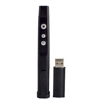 | Features: - Laser pointer - Page up/ down, Play, Black Screen - plug in play - RF2.4G Technology, up to 15meters Specification: - Frequency: 2.4GHz - Distance: 15 Meters - Laser Class: Class III ( (5mw) - USB Port : USB3.0/2.0/1.1 for Receiver - Voltage: 2.4V~3.3V - Power Supply: AAA*1 (Battery is not included) - Weight: 32g (included battery) - Dimension: 132mm (L) *18mm (W) *18mm (H) - System Requirements: Microsoft Windows XP/ 2000/ VISTA/ WIN7/Win8/ Linux - Approval Standard: CE, ROHS Package Included: 1 X Laser Pen (Battery is not included) 1 X USB receiver 1 X Manual |