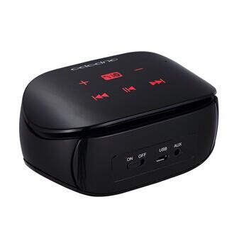 powerful super bass hands-free call bluetooth speaker Feature: Mini bluetooth wireless speaker with NFC function With high-capacity lithium battery power and long time to work, 10 hours of playtime, keep the music always Bluetooth audio transfer and hand-free phone function, built-in microphone, conference call From a range of up to 10 meters from the speakers High quality gift color box package for Bluetooth speaker Specification: | Information | Material | plastic | | Available Color | black | | Net Weight | 150 g | | Size | 115*70*58mm | | Logo | OUPOPO | | Accessories | USB cable, audio cable, user manual | | Packing info | Gift Box: 170*85*70mm | | | | | Specification | Bluetooth Specification | 3.0 | | RF Range | 10-15M | | THD | ≤1% | | Frequency Response | 20HZ-20KHZ | | Working voltage/ current | 3.7~5V | | Signal-To-Noise | 80dB | | Hands-free function | YES | | FM radio | NO | | TF card | NO | | Loudspeaker Output | 4Ω 3W | | Charging voltage/ current | DC5V / USB | | Battery Capacity | 1150mAh | | Charging Time | 3-4 hours | | Playback Time | 8-10 hours | |