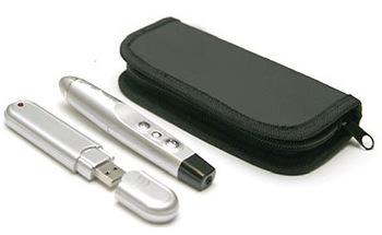 | Presenter Laser Pointer USB Wireless RF Remote Powerpoint control red laser PPT presentation presenter pen General Description: To make your presentation flow continuously, the Powers enter integrates the slide up/ down functions with a laser pointer on a remote hand held device using a wireless technology. The Powers enter's attractive and compact design enables mobility of up to 15 Meters from the laptop/ PC while still maintaining a full navigational control of your presentations. The Powers enter does not require any software and PC programming and take just a few seconds to install and use. Key Features: Plug and play function, no PC programming and S/ W; Working on any computer, on any computer using a USB Port Remote control range over 15m with a very low power eliminates LOS problems encountered with IR systems Transmitter identification, use thousands of ID number to avoid multi-user interferences 2 in 1: Laser pointer, Page up and down function Specifications: 1.100% BRAND NEW. 2. Infrared Technology. 3. Type: Laser pointer 4. Control distance: Up to 15m 5. Red laser beam 6. Power output (1mW 7. Receiver interface: USB2.0 8. USB plug. No driver required (Windows XP) . Windows98/ SE require Win98 system CD to install. 9. System: WINDOWS98/2000/ ME/ XP Linux & Mac OS, Supports Word, Excel, PowerPoint, ACDSee, Internet Explorer, Acrobat Reader etc 10. Supports Word, Excel, Powerpoint, ACDSee, Website, Adobe Reader and etc. 11. Size: 115mm (L) x 18mm (H) x 19mm (W) Package including 1 x USB Receiver 1 x User Manual 1 x USB Transmitter 1 x Black Case |