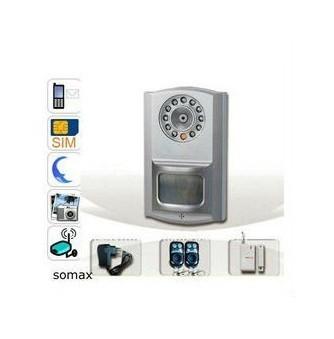 GSM Camera with PIR Detector and Motion Detection Introduction : Detect illegal intruder by built-in PIR detector or external wireless / wired detectors; Once the detectors triggered, it`ll immediately take real-time photos by built-in camera; 300000 pixels night vision camera; Can send SMS or MMS (the scene photos) to 6 mobile numbers via GSM; Can dial and alarm the mobiles for 5 times in cycling, and make scene video record; Support 2GB Micro SD Card to save photos and videos; Can arm / disarm / listen-in / intercom / take photo remotely via SMS or call; Can do settings and check the settings by SMS; Can recognize the alarming zones by SMS content; Can set MMS website and IP; Can edit alarming message content of every zone by SMS. Technical Paramenters : Photo Format : JPEG GSM Frequency : 850/900/1800/1900 MHz Photo Resolution : 320*240640*480 Effective Sensor Distance : 30 ~ 50 meters PIR Detection Range: 5 ~ 8 meters Camera Model : CMOS color Sensor Frequency : 315 MHz Camera Pixel : 300000 Camera Lux : 0.01 Environment Demand : Indoor Camera Distance : 7 meters Weight : 150 g Size : 135* 80 * 30mm Camera Lux : 0.01 Package including: 1PCS alarm host 1PCS Li-on battery 2PCS remote controller 1PCS wireless door magnet detector 1PCS adapter 1PCS bracket 1PCS manual |