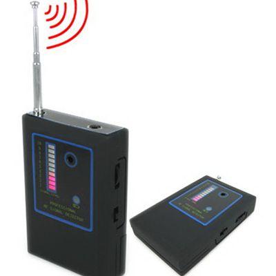 Spy wireless Signal detector Super sensitive. Super sensitive as high as 10 LED indicators to determine signal strength Deffectively Detecting the bug position according to the signal strength of the instruction Wide Band 1 Mhz to 6.5 Ghz, Can detect GSM bug, wireless spy camera, GPS tracker, GPS and Cellphone jammer Audible alarm with tonal change indicates signal strength Vibration warning mode User can use earphones for convenient monitoring of audible alarm Sensitivity tuner Small Size: 65 x 54 x 18mm Powered by AAA battery x2 for Spy wireless Signal detector |