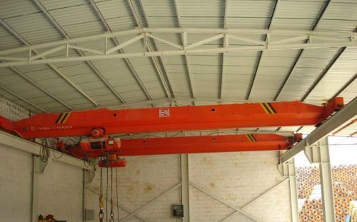A Single Girder Bridge Crane is an overhead bridge crane that has one bridge girder that supports the trolley and hoist. The trolley and hoist ride on the bottom flange of the bridge girder. The single girder bridge crane is considered top running when the bridge girder rides on top of the runway beams.