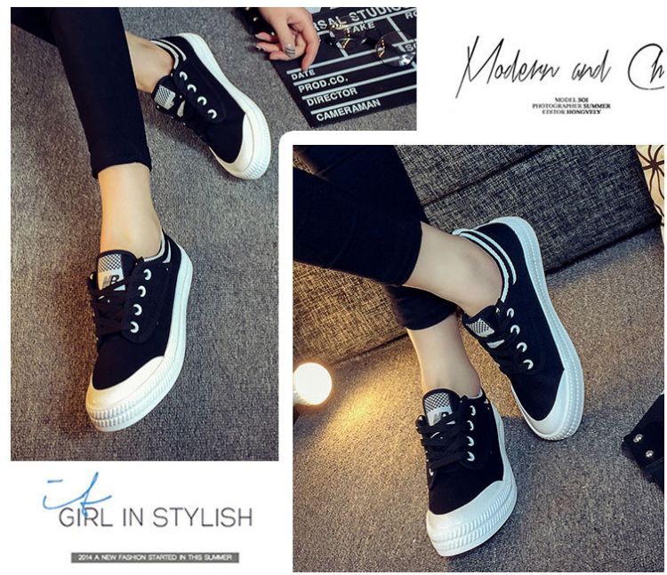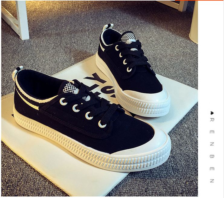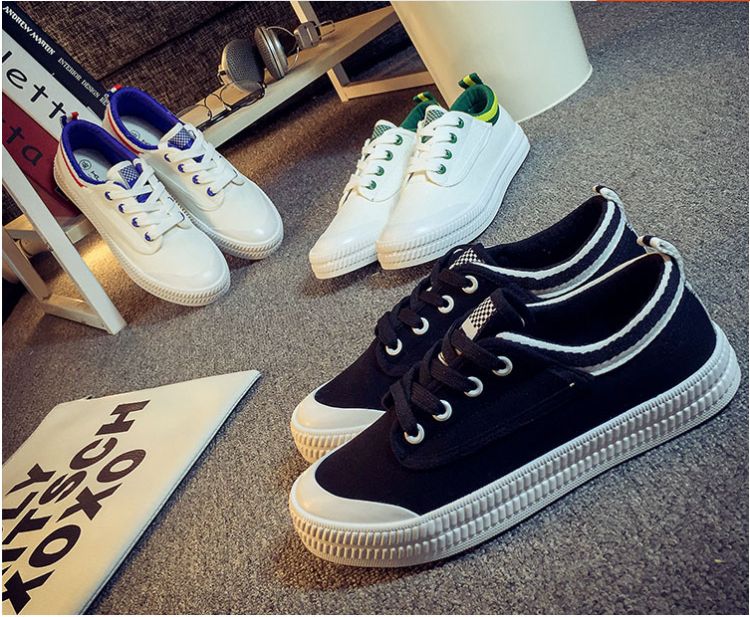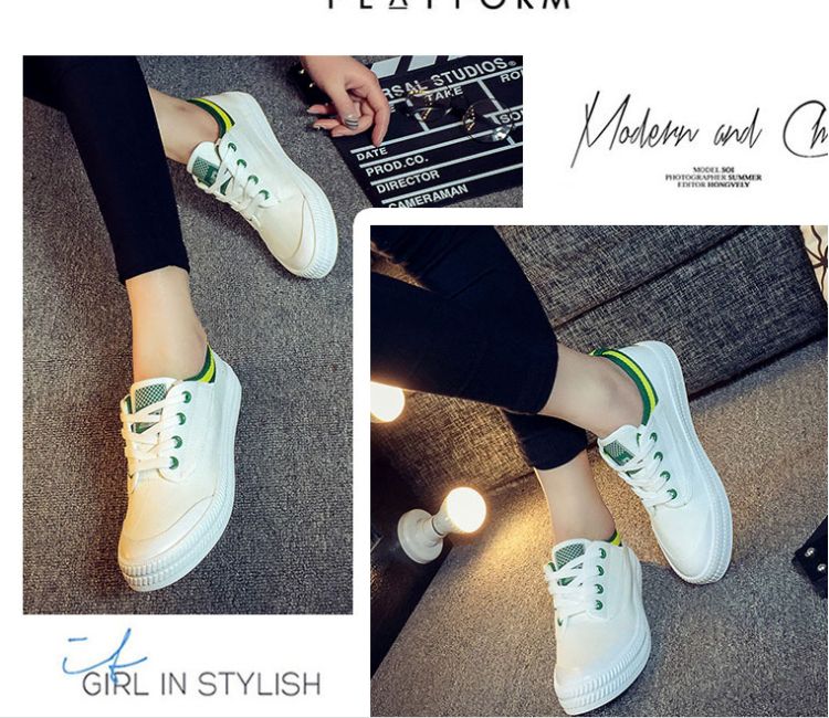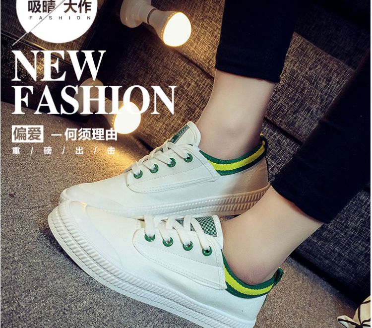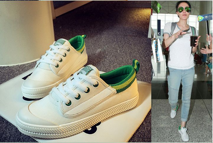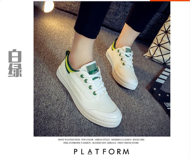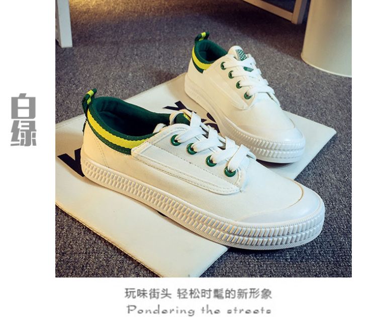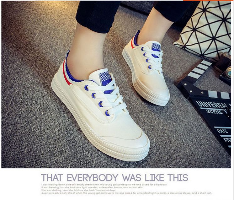 Spring and summer Faye Wong same paragraph white canvas shoes student shoes flat shoes lace casual shoes white shoes