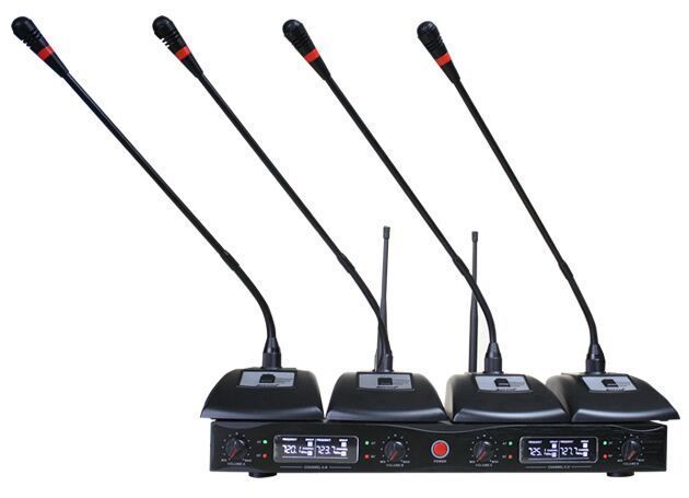 Using UHF UHF band, lessinterference than traditional VHF band and transmission is more reliable. Equippedwith multichannel digital phase lockedloop DPLL frequency synthesis technology, can provide 50MHzfrequency with over 200 channels in 250 kHz channel space. This is convenient used in Sametime and easy to avoid all kinds of interference equipment sets. even emitterand receiver tuning frequency is wrong, you only need to press the button, then thetransmitter will automatically lock frequency of the receiver, and in accordance with advanced automatic frequency hopping adjustconsistently. low power switching function, for meeting places (high power emission), classrooms and KTV rooms (low-power transmitters). in order to save battery power. piggyback launches andreceiver lock function to prevent incorrect operation. in addition, you to increase capacity ofresisting interference and increase the receiver sensitivity adjustment function canadjust distance required by the sensitivity of the receiver. Aexcellent LCD monitor to make working conditions more clearly.
