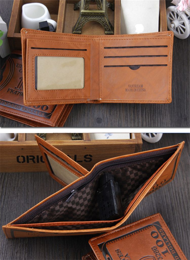 It' s inner structure is one zipper pocket, two photo slots, four card slots, two money pockets. You can put money, photos and card in it.