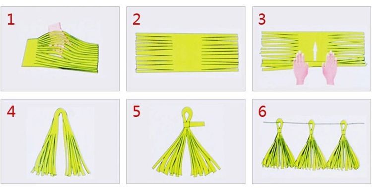 5. This paper tassel is made from strips of colored tissue paper.