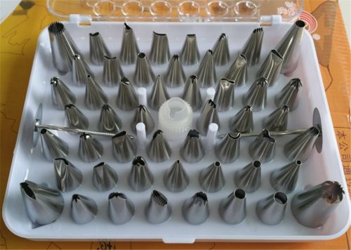 52 differently ended icing nozzles.With Clear plastic storage box.