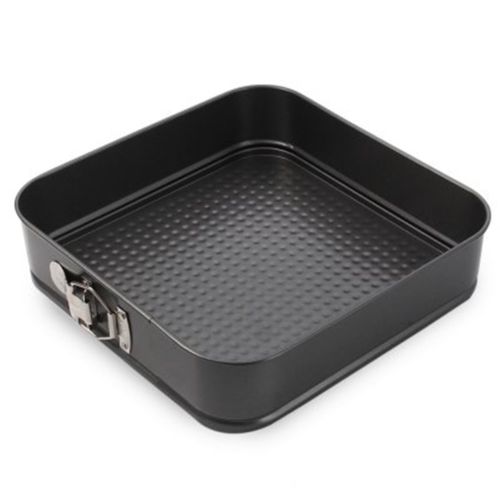 Spring latch and removable bottom make baking much easier.